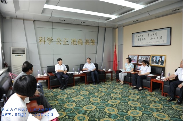 ??? 7月3日,國家質檢總局高級專家咨詢服務團西部行(內(nèi)蒙古)活動質量技術監(jiān)督服務小組到內(nèi)蒙古計量院開展咨詢服務活動。總局科技司綜合處處長梁波等一行5人在自治區(qū)質監(jiān)局人事處副處長盧娜等相關人員的陪同下到計量院進行調研。呂金華院長陪同參觀調研。